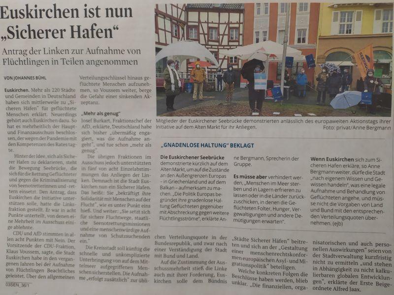 Seit Februar 2021 ist Euskirchen ein sicherer Hafen. Wir freuen uns und danken allen, die bei der Durchsetzung des Antrages in den vergangenen Jahren mitgeholfen haben. Das ist ein toller Erfolg, an dem sich die Stadt Euskirchen wird messen lassen müssen.