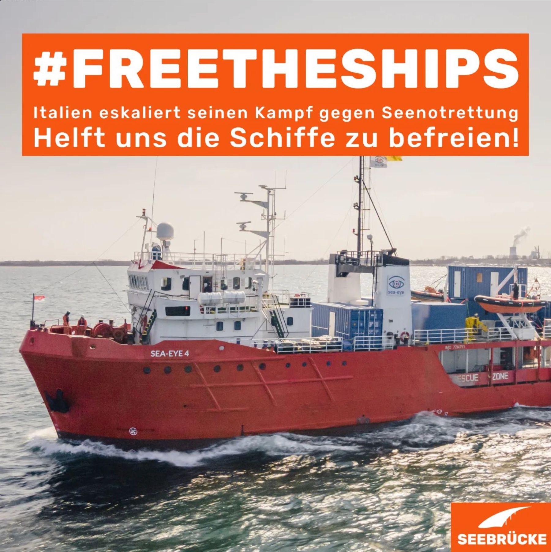 Das sofortige Ende der Festsetzung der Seenotrettungsschiffe, damit diese die humanitären Einsätze fortsetzen und so viele Menschen wie möglich vor dem Ertrinken bewahren können! Denn dass Italien das Agieren von Schiffen unter deutscher Flagge in internationalen Gewässern sanktioniert, ist nicht rechtmäßig! Hier sind Deutschland als Flaggenstaat und besonders Bundesverkehrsminister Volker Wissing als zuständiger Minister, der sich um Belange der Schifffahrt kümmert, in der Verantwortung!