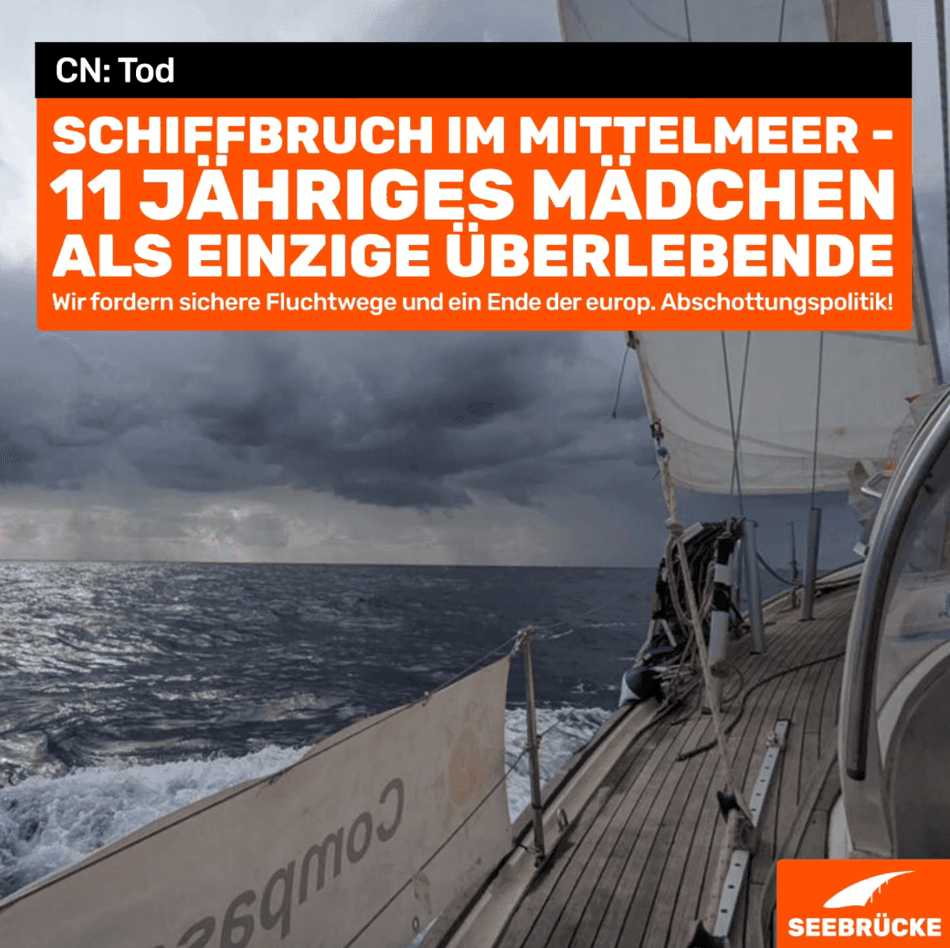 CN Tod\ Am Mittwoch rettete das Compasscollective Boatspotting mit der Trotamar III ein 11-jähriges Mädchen aus Seenot. Sie war Opfer eines Schiffbruchs in einem Sturm geworden, 44 weitere Menschen si…